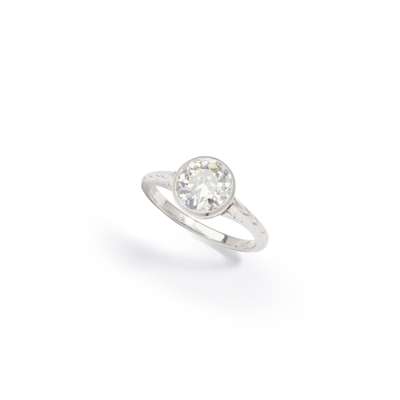 Millegrain-set with an old brilliant-cut diamond, between engraved shoulders, Austrian assay marks