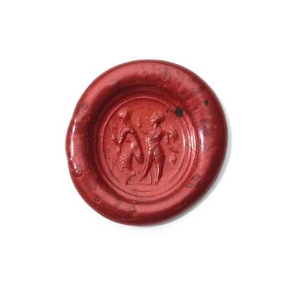 A EUROPEAN MID-19TH CENTURY REVERSE PAINTED CRYSTAL AND HARDSTONE GOLD MOUNTED SEAL, CIRCA 1860