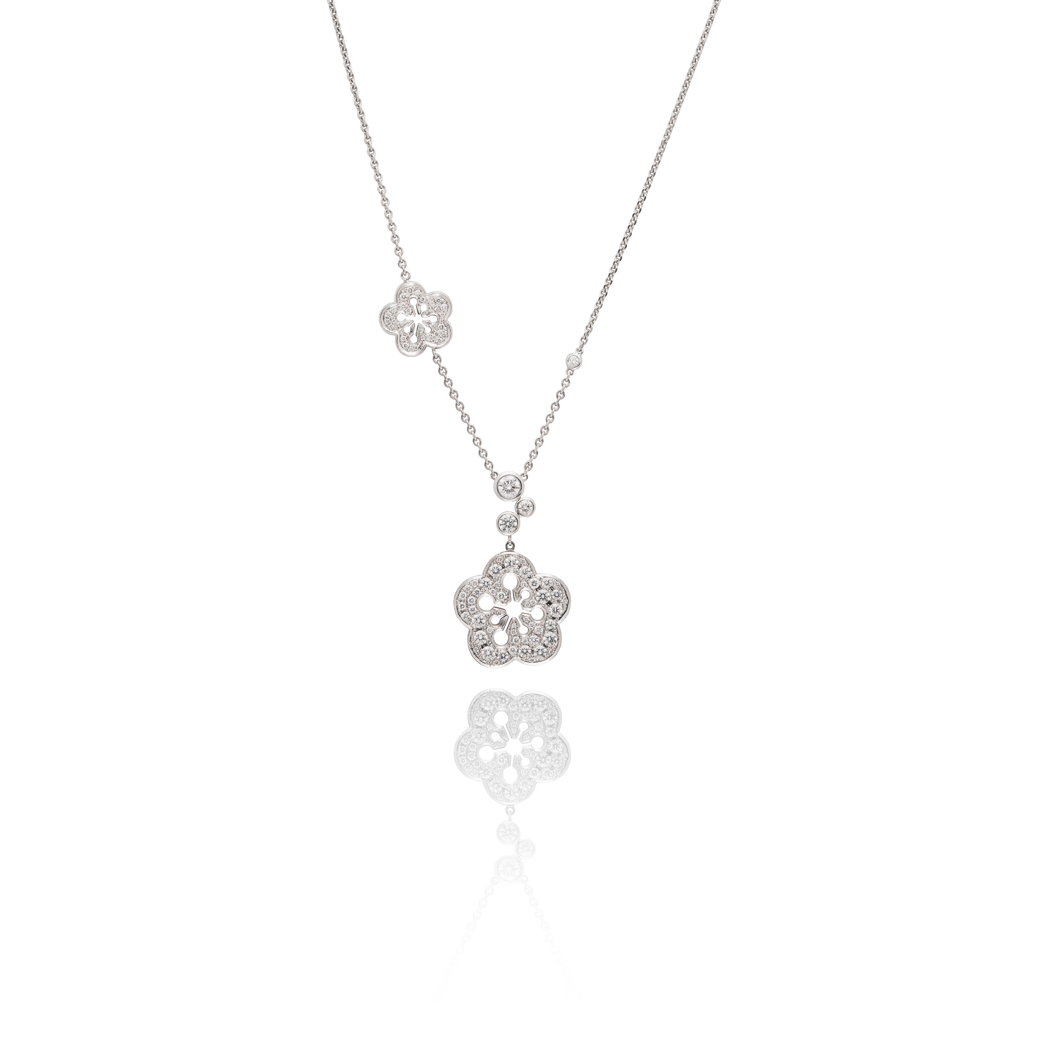 The stylised floral links pavé-set with graduated brilliant-cut diamonds, collet-set with three brilliant-cut diamonds, modelled in 18ct gold, signed, UK hallmark, numbered