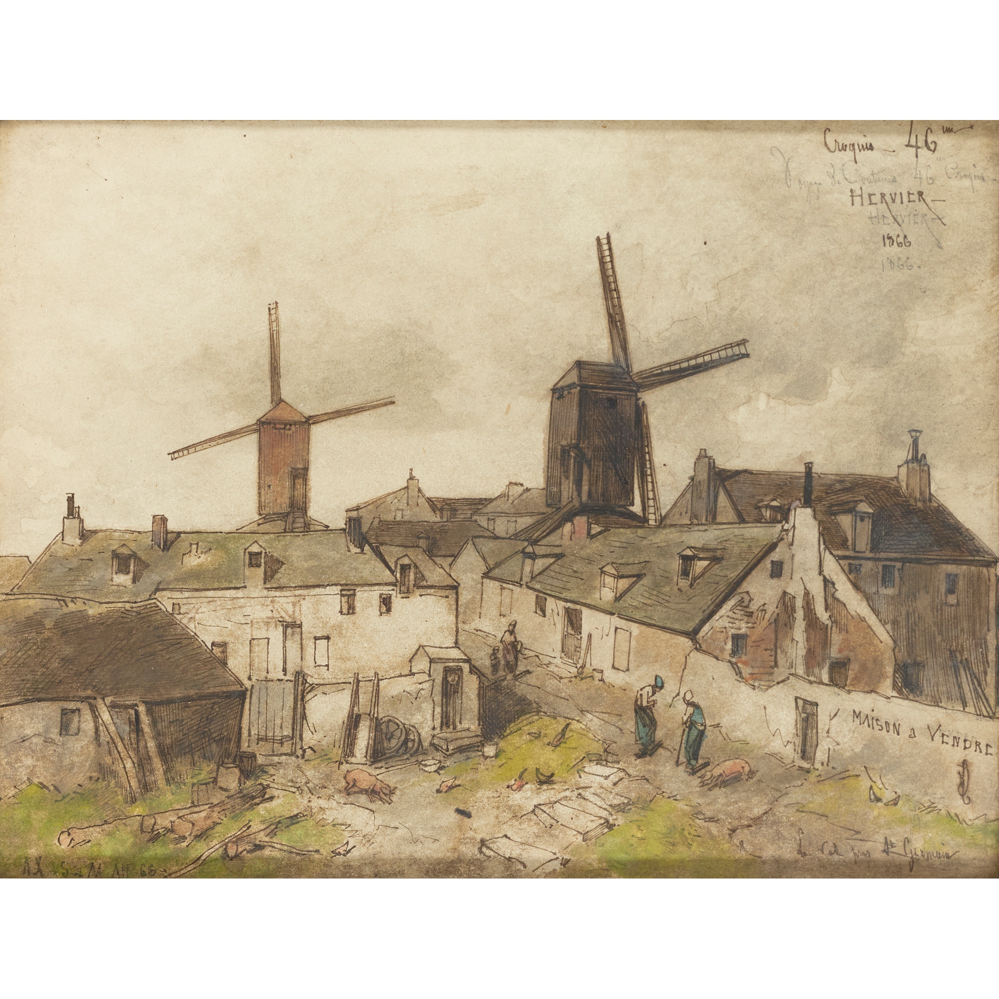 Signed, inscribed 'Croquis 46' and dated 1866, pen and ink and watercolour