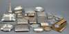 to include a bright engraved small oval box, Birmingham 1905, a cedar lined cigarette box, Birmingham 1901, with presentation inscription also crested, five assorted cigarette cases, a purse, vesta cases, cheroot holders, a match box cover, two ashtrays, a plated Ronson table lighter, a medal and other pieces (qty)