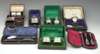 with marks for Birmingham 1907, maker's mark WA, of semi-fluted baluster form, contained in a fitted case, a cased pair of engine turned napkin rings, Sheffield 1909, another foliate engraved pair, Birmingham 1908, together with another five assorted cased christening sets (A/F)