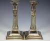 with marks for Sheffield 1909, maker HW, each of square outline and stepped square base with bead borders, beneath a fluted and reeded column and Corinthian capital