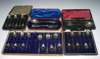 with marks for London 1840, maker's mark WE, initialled, a set of twelve Rat-Tail pattern coffee spoons with matched sugar tongs, Sheffield 1912 and 1913, contained in a fitted case, and six assorted cased sets, various dates and makers (qty)