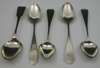 to include a Fiddle pattern teaspoon marked IK, salmon, R and B, an Old English pattern teaspoon marked pot, IK, B and H, an Old English pattern teaspoon marked pot, IK and ribboned B, a Celtic Point pattern teaspoon marked M, IK and B and another similar teaspoon, marked ribboned B, IK and ribboned B (5)