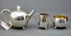 with marks for Sheffield 1885, maker's mark HA, comprising teapot sugar bowl and milk jug, each of globular form on three ball feet
