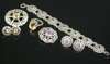 with marks for Glasgow 1960, the central circular cut amethyst within a knot-work surround, also a bracelet composed of similarly pierced circular amethyst set links and a pair of matching earrings, together with a citrine set suite comprising a brooch, ring and earrings (qty)