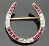 designed as a horseshoe, the front alternately set with groups of four calibre cut rubies and four old single cut diamonds