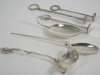 with marks for Edinburgh 1935, maker Brook & Son; another similar spoon, Edinburgh 1937, same maker, with beast's head cast handle; a continental silver spoon, with import marks for Sheffield 1899, with double-lipped bowl; together with three assorted crushers for toddy (6)