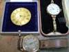 the silvered circular dial with arabic numerals and subsidiary seconds dial, inscribed to reverse; two 18ct gold lady's wristwatches; a 9ct gold example; together with six assorted fob watches (qty)