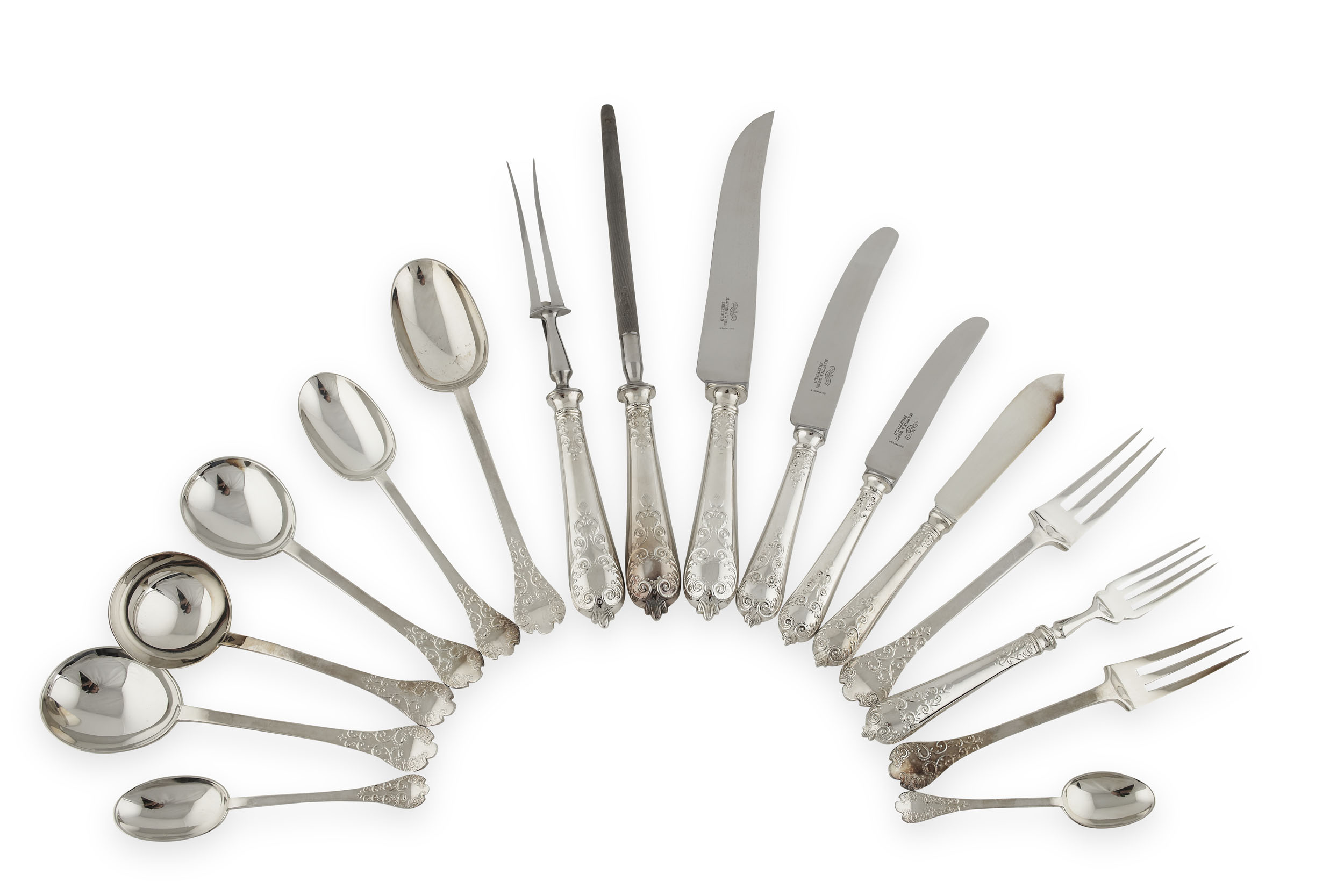 Mappin & Webb, London 1979, of Trefid pattern with lace detail to terminal and heels, comprising twelve each of;