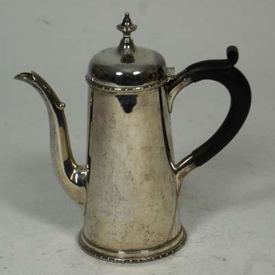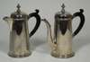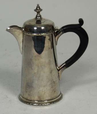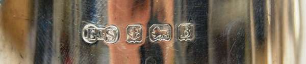 Birmingham 1926, of simple flared cylindrical form with moulded rims, with side S scroll wooden handles (2)