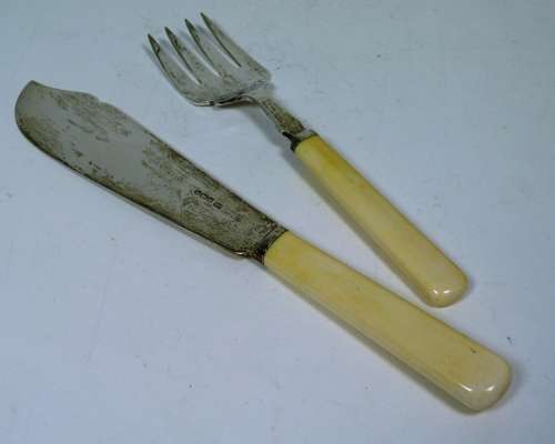 H Atkins, Sheffield 1920, with simple shaped blade and tines and ivory handles; together with a collection of mixed flatware