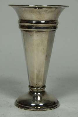 makers mark indistinct, London 1919, of circular form with octagonal panelled body and a plain circular foot, with fitted flower grill (2)