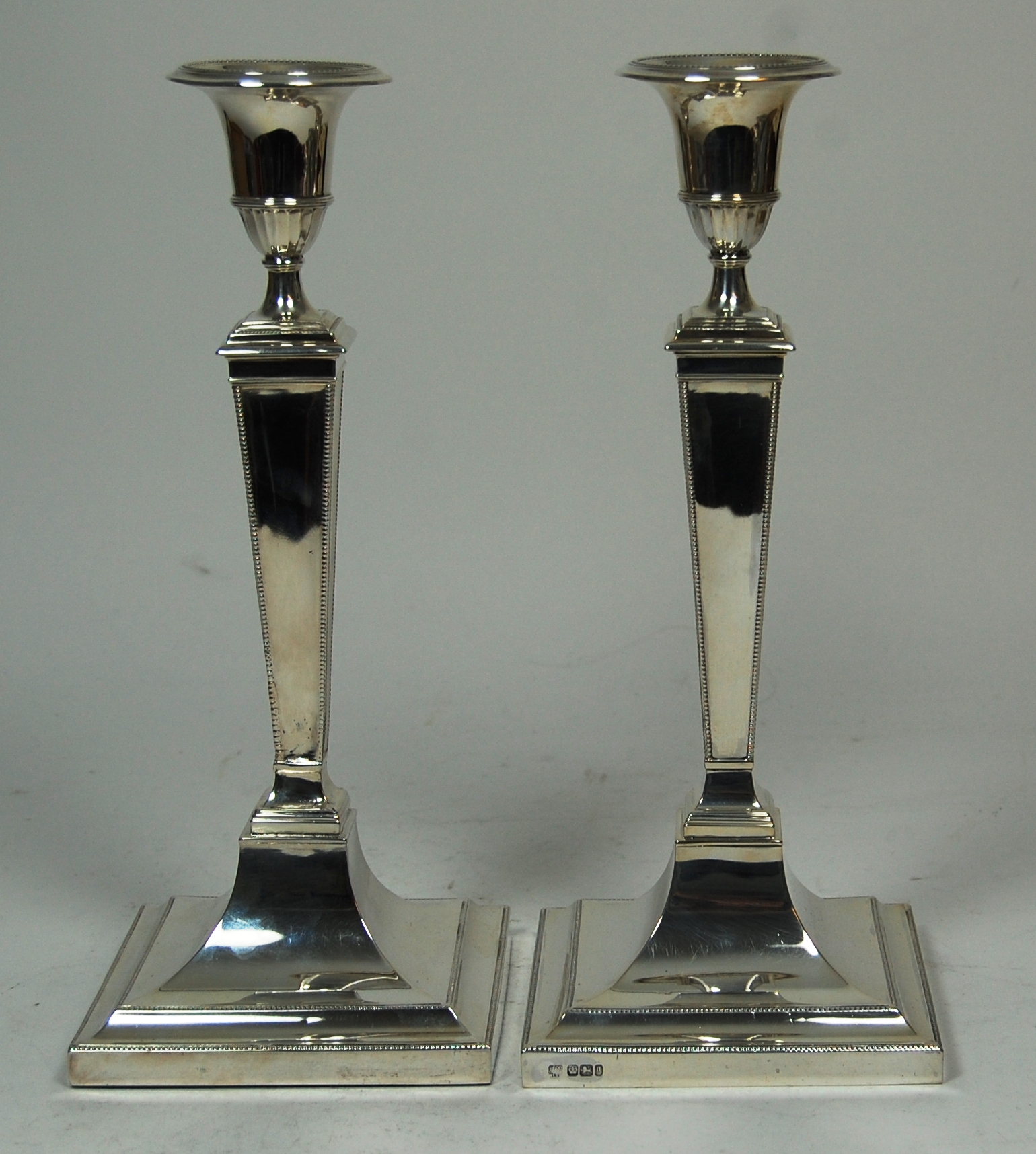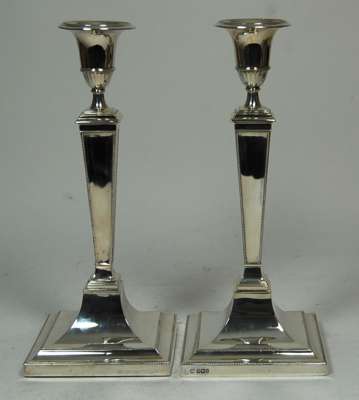 Hawksworth, Eyre & Co Ltd, Sheffield 1899, of square outline with tapered columns and beaded decoration on a swept square foot (2)
