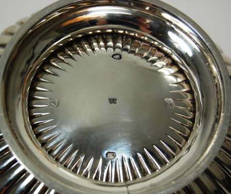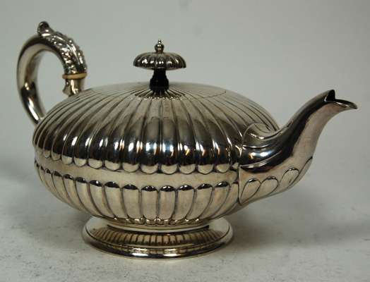 DH/CH, london 1861, of compressed globular form with all over fluted decoration and flush hinged cover, with short spout and C scroll handle