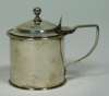 M.S, London 1817, of simple form with reeded rims and domed hinged cover with bun finial and pierced thumbpiece, with reeded C scroll handle; together with a Victorian caster, Sheffield circa 1900, of vase form with beaded rim and foot, the pull off cover with pierced decoration (2)
