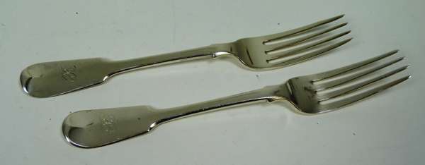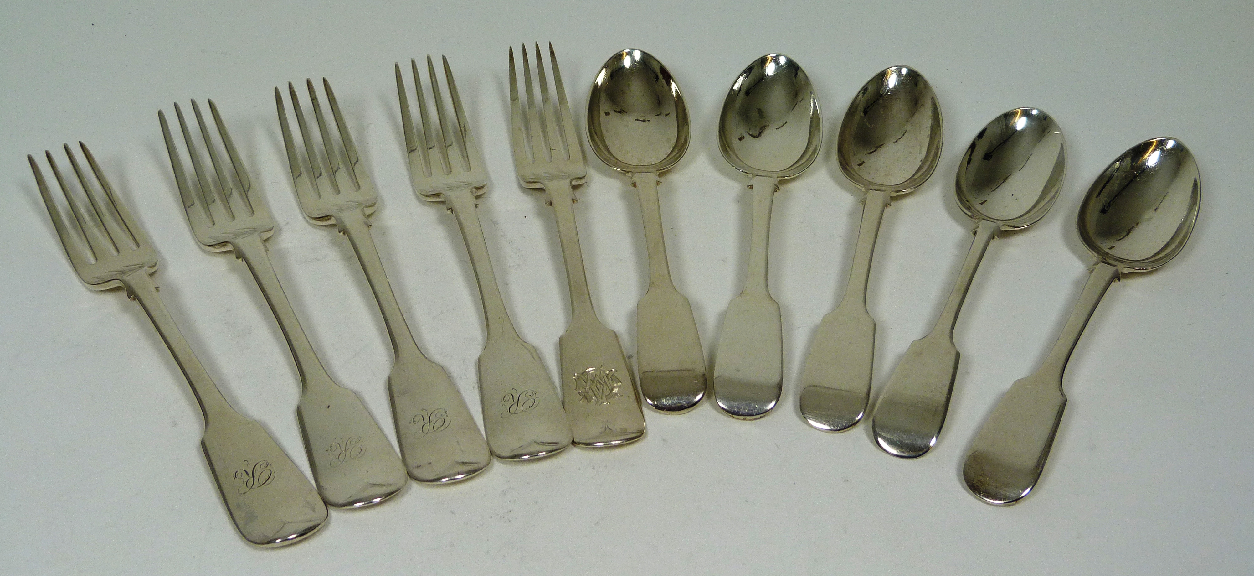 mainly George III and Victorian, comprising eighteen dessert spoons, twelve table forks, twelve dessert forks (qty)