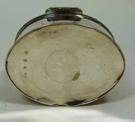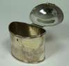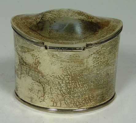 London 1779, of straight sided navette form with domed hinged cover and lock