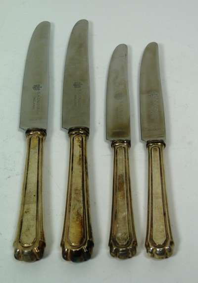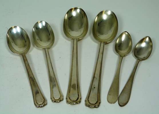marked 800, comprising twelve table forks, eight table spoons, six dessert spoons, six dessert forks, eight tea spoons; with twelve table knives and six dessert knives; together with a continental set of five tea spoons (qty)