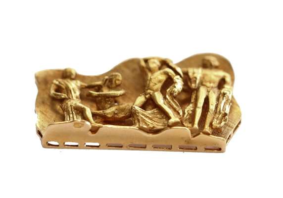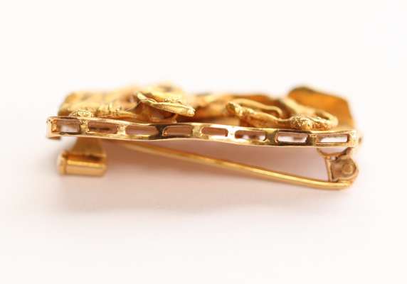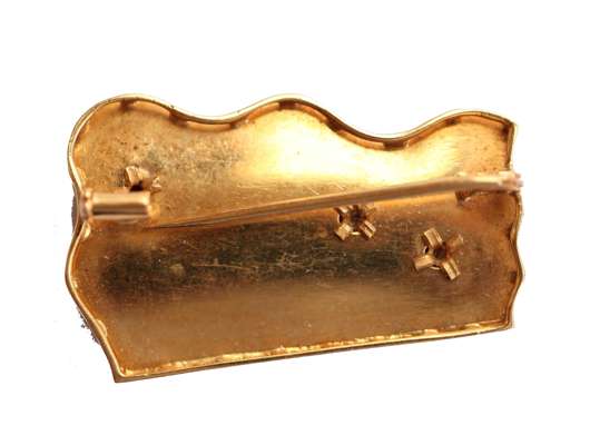 of shaped 'excavated' form, slight gallery surround, plain pin fastening, indistinctly stamped