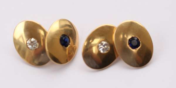 An early 20th century pair of 18ct gold mounted sapphire and diamond set cufflinks