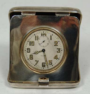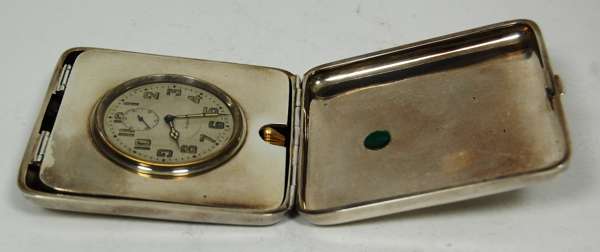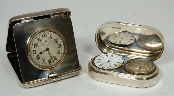 John Collard Vickery, London 1907, consisting of a pocket watch and android barometer in a tablet shaped fitted case; combined with a silver pocket watch in case, Birmingham 1927 (2)