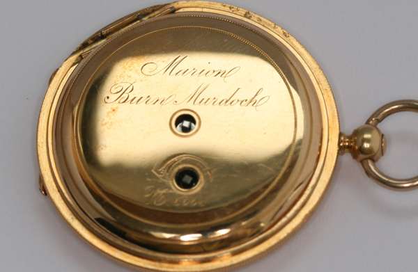 floral and engine turned decorated case, white enamel dial, inscribed to the cuvette 'Marion Burn Murdoch'
