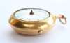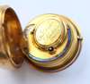 the outer case plain in 18ct gold, the watch with enamel dial with plain Arabic numerals, single hand (one lacking) the cuvette inscribed and numbered 3052, the movement also signed and numbered, square section balustrer pillars, well pierced balance wheel cover