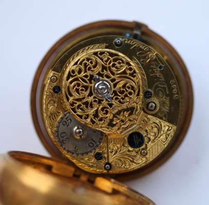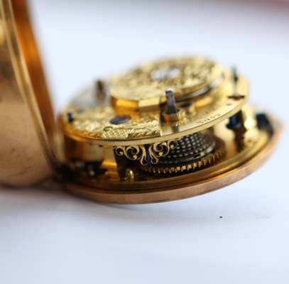 ANDREW DICKIE, LONDON - an 18ct gold pair cased verge pocket watch
