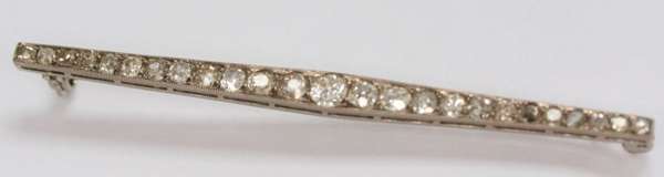 the graduated row of mine cut diamonds set in white metal, pierced gallery, unmarked, circa 1920