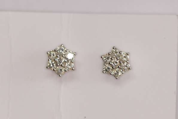A pair of 18ct gold mounted diamond floral cluster earrings