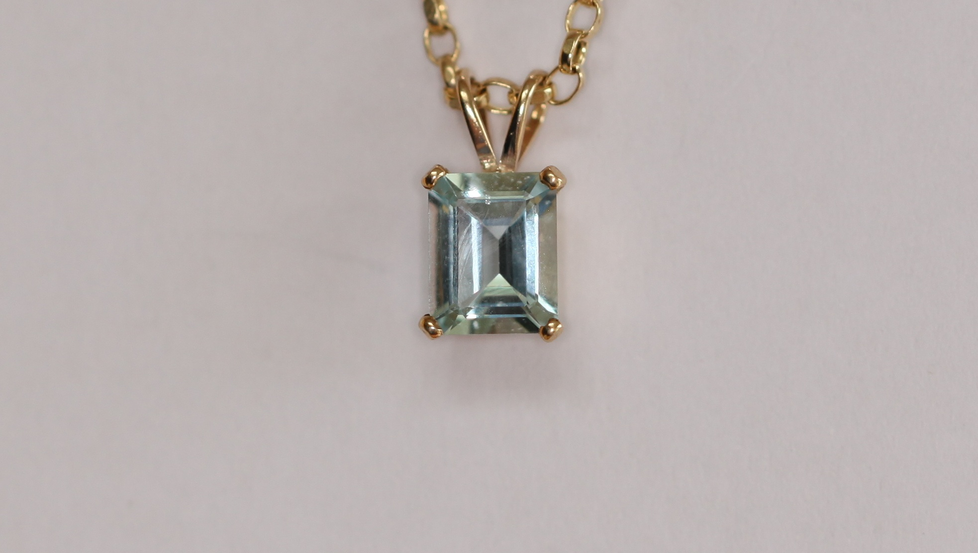 An aquamarine set pendant with chain