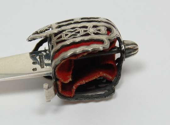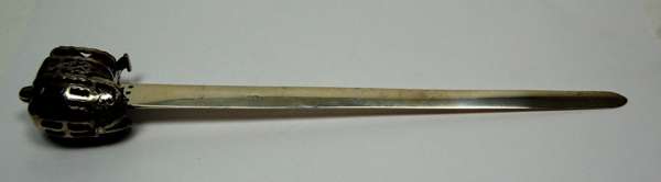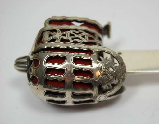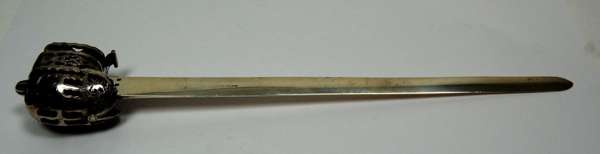 J Aitchison, Edinburgh 1912, with pierced and engraved basket with thistle moitfs and fluted pommel, with simple tapered blade