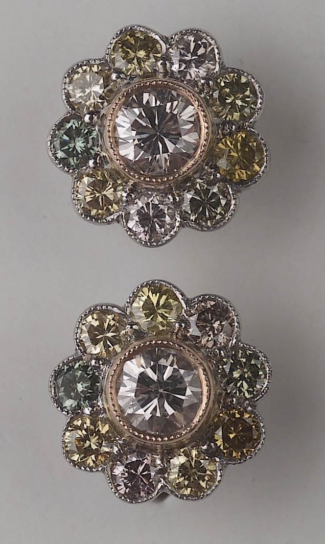 set with a differing multi-coloured diamonds in 18 ct white gold, total weight of diamonds: 1.22 carats