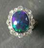 the centre oval opal surrounded by 16 diamonds of approximately 1.20 carats, and mounted in 18 ct yellow gold.