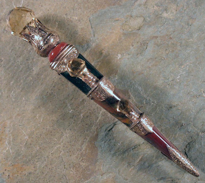 in the form of a dress dirk, set agates and facetted citrine knops