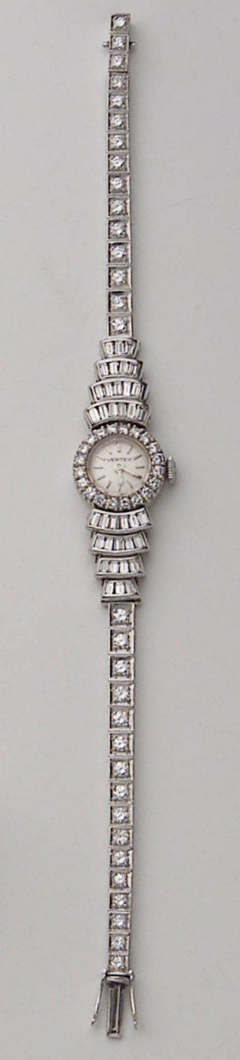 set with brilliant and tapered baguette diamonds in fan pattern signed Vertex
