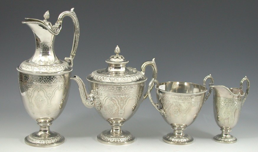 An electroplated four-piece tea service
