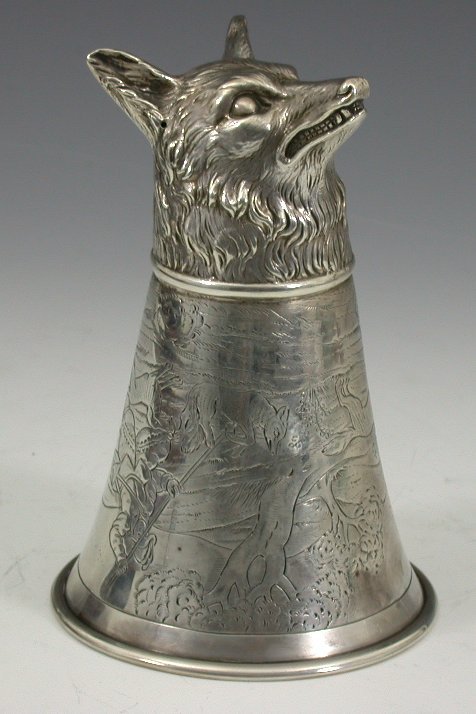A Continental fox mask stirrup cup