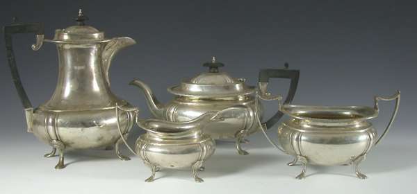 Sheffield 1919 maker's mark of JD WD, of rounded rectangular form, gadrooned borders, angular handles each on four pad feet