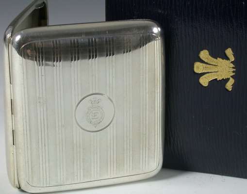 A cased silver cigarette case with the crest of Edward, Prince of Wales