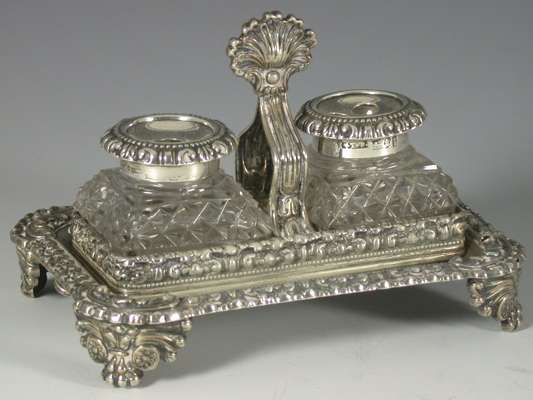 A William IV silver inkstand
