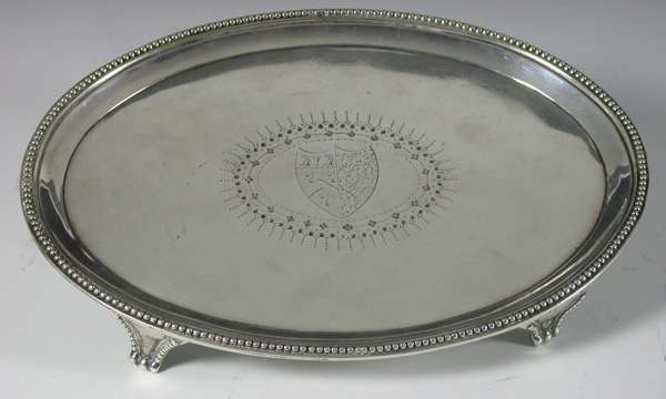 An George III oval silver waiter