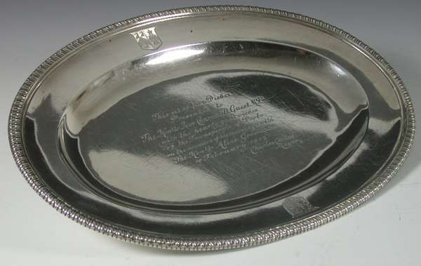 gadroon border, plain inner border with engraved crusts, the centre of the foot with early 20th century inscription