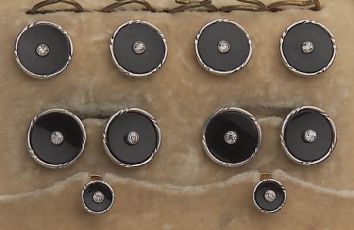 in onyx and diamond with rope borders set in platinum and gold backed platinum. Davis, Duff & Son, Glasgow