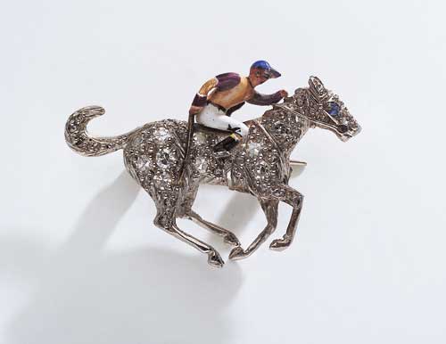 A diamond set jockey and horse brooch