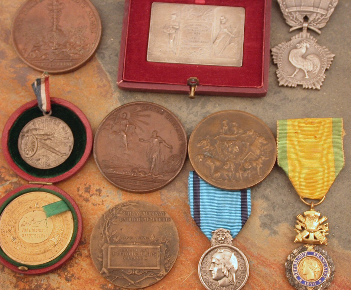 circa 1920 including French Agriculture in bronze and silver, French Valour medal 1870 etc