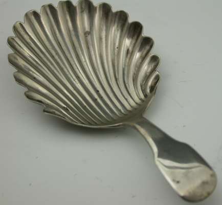 with marks for Dundee, circa 1820 maker AW, of fiddle pattern, shell shaped bowl