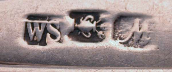 with marks for Dundee circa 1790, maker William Scott, of Old English pattern, pointed end feather edge engraving with sunburst crest and numbered 1-4, 8-11, 13, 15, 16, 18, three marks, WS, pot of lilies, W (12)